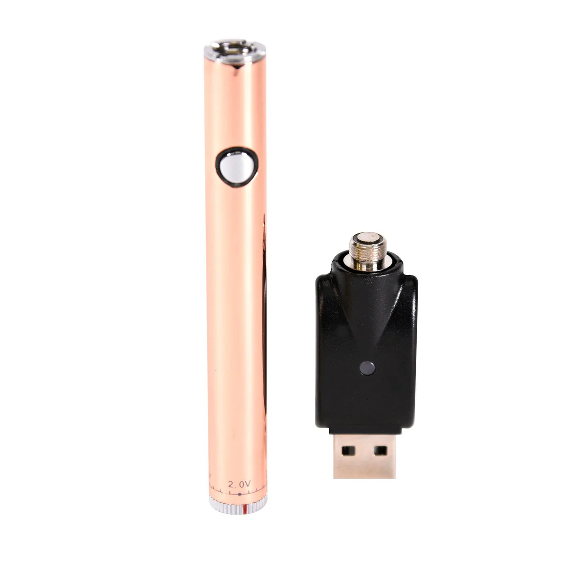 Our Rose Gold 510 thread battery with a variable voltage twist setting is perfect for all vaping needs. It is designed for convenience and durability. This sleek battery offers a simple design with smart heating functionality for a premium experience.